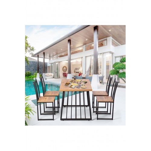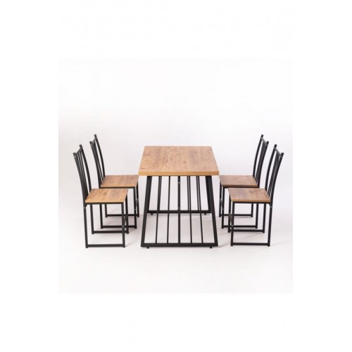 Renk : Siyah Materyal : Metal Masa Fonksiyonu : Sabit Sandalye ve Bank Sayısı : 4 Sandalye Rengi : Siyah Sandalye Kumaşı : Kumaş yok